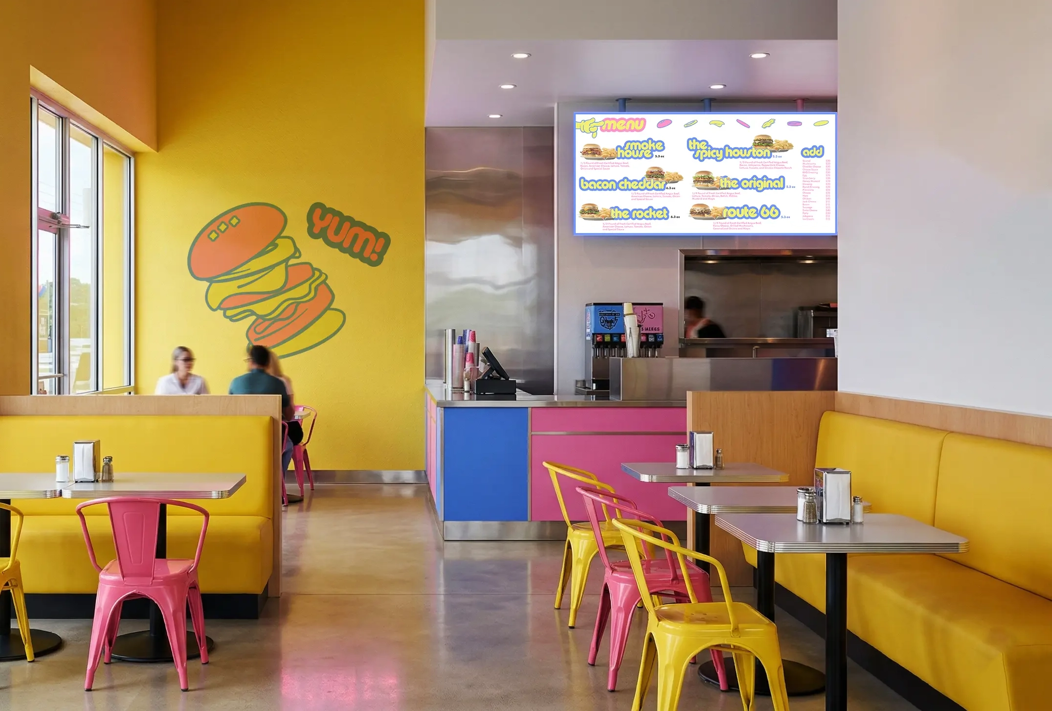 This is a rebranding project for Johnny Rockets. Reinterpreting the brand’s original vision of futurism, I developed a concept centered on Y2K futurisman aesthetic that is once again widely embraced in contemporary culture. I modified the Pump typeface to create a custom typographic system, and incorporated illustrations inspired by atomic motifs to enhance the playful nature of the fast-food industry. Through this approach, the design moves away from rigid structures, instead expressing a more fluid, contemporary, and visually engaging identity.